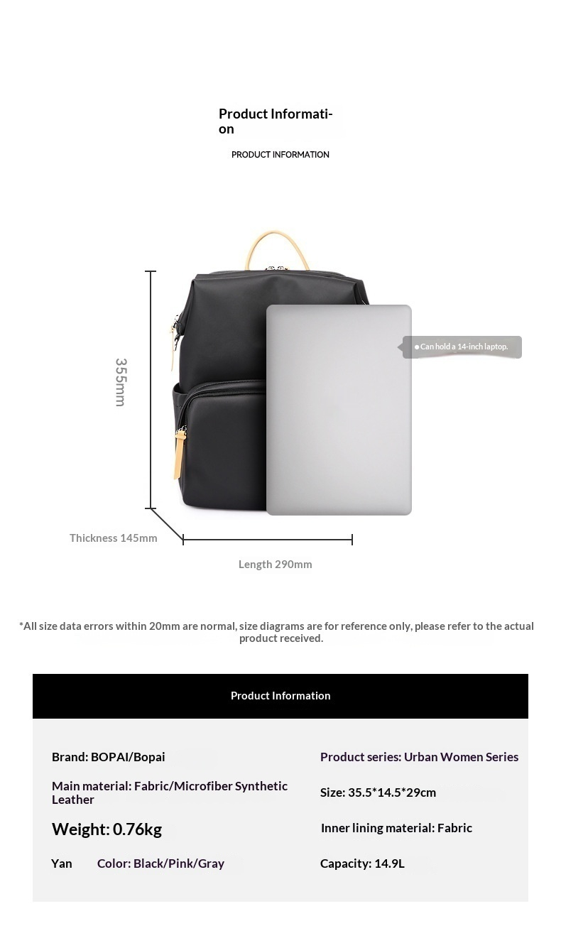 Lady's Lightweight Water-resistant Laptop Backpack